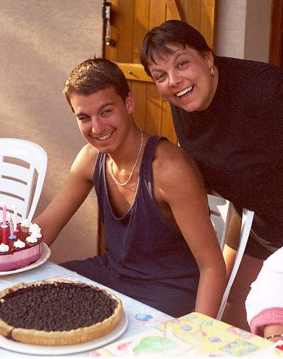 coucou les fille et cyrille bien sûr...Je vois que hiers on c'est un peut laisser aller à paler de nos disparus et défois ça fait du bien de penser à eu. Pour ma part j'ai toujours un peut de mal a m'en remettre après mais on ne va pas se laisser aller au vague à l'âme, il faut aller de l'avant, la vie continue même si elle ne sera plus jamais la même sans eux.... En se moment très prise par l'achat des cadeaux de Noël, ça prend un temps fou, je n'ai même pas encore pensé aux repas de Noël , je veux rester light , je vais trouver et si je ne suis pas trop inspirer je ferais une fondu chinoise aux fruit de mer ça correspond super bien aux régime et c'est délicieux....Si vous avez des idées. J'aimerai faire une verrine en entrée, j'ai acheté des livres mais je ne m'y suis pas encore plongé par manque de temps... Je pense très fort à vous toutes et tous et je vous embrasse. Je ne peux pas résister à vous envoyer une photo de moi et mon fils julien (celui qui est décédé) en fils formidable, aimant , serviable, sportif , bon élève très ataché à sa famille...bref un fils parfait qui me manque tellement... |