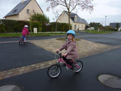 COralie a appris à faire du vélo chez papé et mémé elle est très fière
