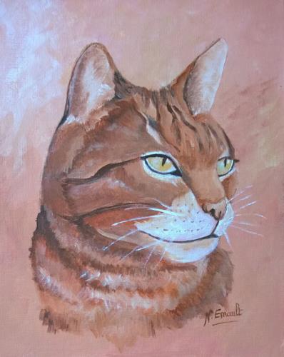 Maintenant que VERO l'a reçu, je me permets de vous présenter son CARAMEL.... C'est la première fois que je peignais un tit chat sur toile... |
