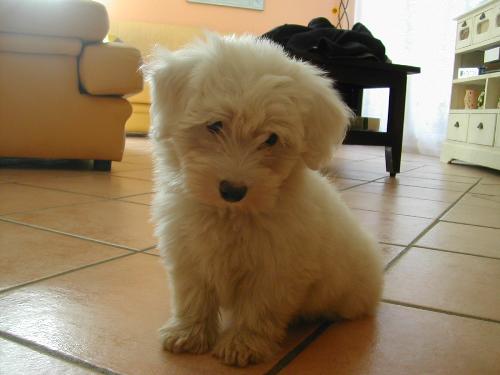 Ce matin, au cabinet impossible de venir faire un coucou car surchargée de travail que j'étais :-S . Kermitt courage avec ton dentiste, dis-toi que le plus difficile est fait (prendre son rendez-vous) et petit à petit les soins vont se faire et tu auras des dents toutes neuves (ou presque). Nanou, c'est sûr qu'avoir un animal quel qu'il soit cela coûte énormément d'argent et demande aussi des sacrifices mais ils nous apportent après tellement de bonheur :D . Si je peux me permettre quelques suggestions : Prendre un rendez-vous chez le vétérinaire pour qu'il te donne des conseils alimentaires (car un chiot a besoin de croquettes de qualité et non de jambon ou de je ne sais quoi...), des conseils de toilettage et surtout des conseils d'éducation. Car si vous commencez à faire tout et n'importe quoi à la maison avec elle, elle va vous mener par le bout du nez et être insupportable. C'est comme un enfant, il lui faut des limites et il faut qu'elle apprenne à obéir même si tu as envie de céder à tous ses caprices sous prétexte qu'elle est belle et qu'elle est petite. L'éducation d'un chiot se fait dans les trois à six premiers mois, après c'est la catastrophe..... Après vous faites bien comme vous le souhaitez mais si vous voulez l'emmener avec vous un peu de partout, en voiture et chez des gens, je vous conseille vivement de prendre conseille auprès de votre vétérinaire. Athos a appris à marcher en laisse à mes pieds (il ne tire pas), à demander quand il a besoin de sortir et non pas à faire ses besoins n'importe où, à se coucher en voiture (et à ne pas faire le guignol question de sécurité pour lui et nous), à ne pas mendier quand on est à table car autrement c'est la misère complète et on ne peut les emmener nulle part. Bref leur éducation est comme celle d'un enfant, car ces petites boules de poils sont super intelligentes et ta Cléo comprendra très vite vers qui elle pourra se tourner pour faire l'imbécile, avoir quelque chose de sympa à manger. |