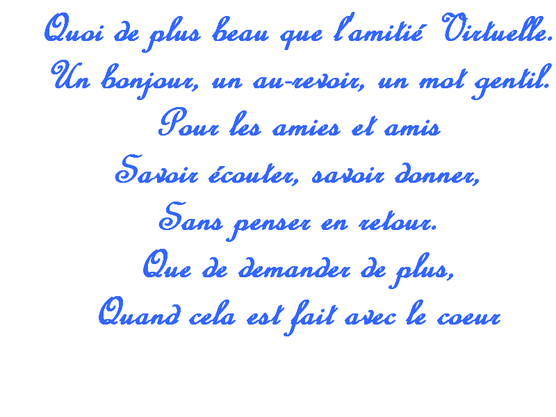 salut à tous, il n'y a vraiment plus personne sur le forum, certaines sont parties en vacances, je les leur souhaite très bonnes et pour les autres un bon été. On verra à la rentrée si vous revenez papoter ou non. Je stoppe mon bavardage aussi car ce n'est pas marrant de parler seule !!!!,l n'y a que Nini qui est très fidèle. Peut-être est-ce la chaleur car il fait très très chaud. ,Je vous embrasse. |