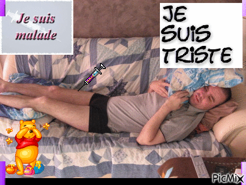 Et voilà mon grand malade après sa dernière piqûre :-S :-S :-S :-S LOL !!!!! Même pas mal...... X( X( X( ce "cinéma" a durer 6 jours.....MDR :-q :-q :-q J'espère que vous avez toutes passer une bonne journée :x :x , pour moi.... :-S :( !!! Demain, ça ira mieux.....quoique: 21 JUIN 1968- 21 JUIN 2010= 42 ANS DE MARIAGE :(( :(( Et mardi, rebelote, car nous nous sommes mariés PAPYJO ET MOI, sur 2 jours: Le vendredi civilement, et le samedi religieusement, avec la "belle robe", les fleurs et la fiesta !!!!!! Je vais "assumer" comme j'essaye de le faire depuis ces derniers jours, mais franchement, ce n'est pas évident :(( :(( :(( !!!!! Comme je me réveille très tôt( vers 5h ) je ne vais pas tarder d'aller rejoindre ma marmotte, car comme ça, je me repose convenablement durant 6/7 heures :-S :-S :-S Bonne nuit à toutes, faites de jolis rêves et à demain...... :x :-* :-* :x |
