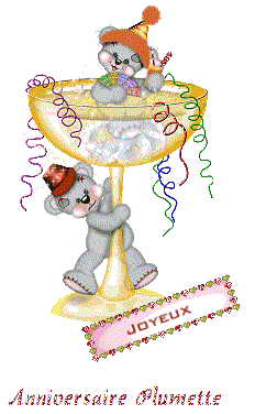 Coucou PLUMETTE, :x Je te souhaite un JOYEUX ANNIVERSAIRE. J'espère que cette journée va te laisser un peu de répit et t'apporter tout le bonheur que tu mérites. Je t'envoie de tendres :-* :-* |